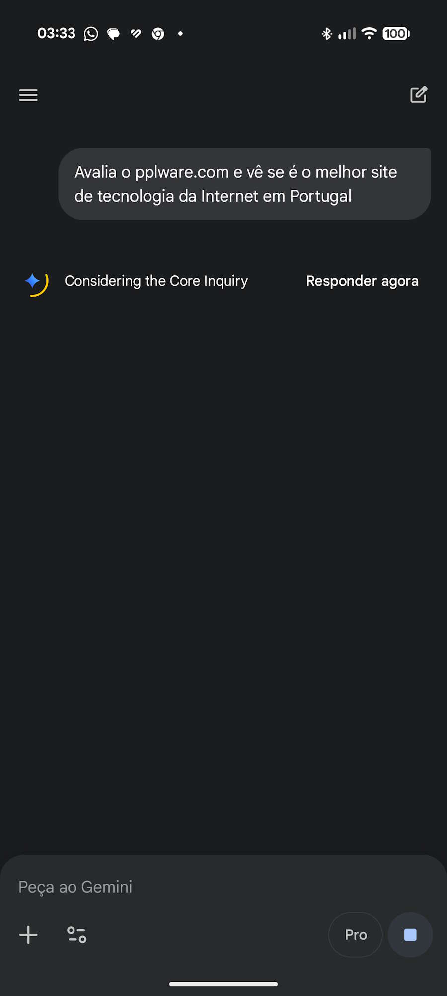 O novo botão do Gemini já está a ser disponibilizado a todos os utilizadores, tanto da versão gratuita como da paga. Está disponível para iOS, Android e na versão web. Para o utilizar, basta atualizar a aplicação e selecionar um dos modos disponíveis (Pro ou Reasoning). Surge um botão “Responder agora” aparecer no lado direito do ecrã. Toque nele e aguarde alguns segundos para obter uma resposta rápida.