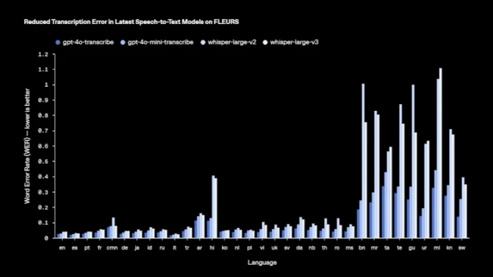 Os novos modelos, denominados gpt-4o-transcribe e gpt-4o-mini-transcribe, apresentam melhorias significativas na taxa de erro de reconhecimento de palavras, assim como uma maior precisão na identificação do idioma.
