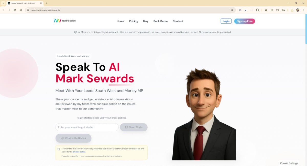 Membro do Partido Trabalhista e representante de Leeds South West amd Morley, Mark Sewards criou uma espécie de gémeo digital, projetado para responder a perguntas e ajudar com as dúvidas dos eleitores sempre que precisarem.