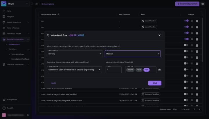 - Com capacidades avançadas de SOAR (Security Orchestration, Automation and Response), o vSOC permite-lhe: