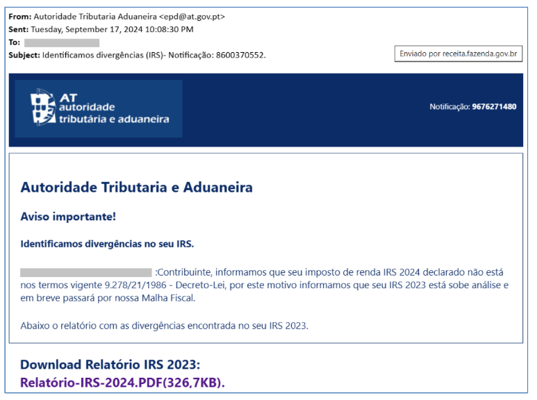 A Autoridade Tributária e Aduaneira (AT) tem conhecimento de que alguns contribuintes estão a receber mensagens de correio eletrónico supostamente provenientes da AT nas quais é pedido que se carregue em links que são fornecidos.