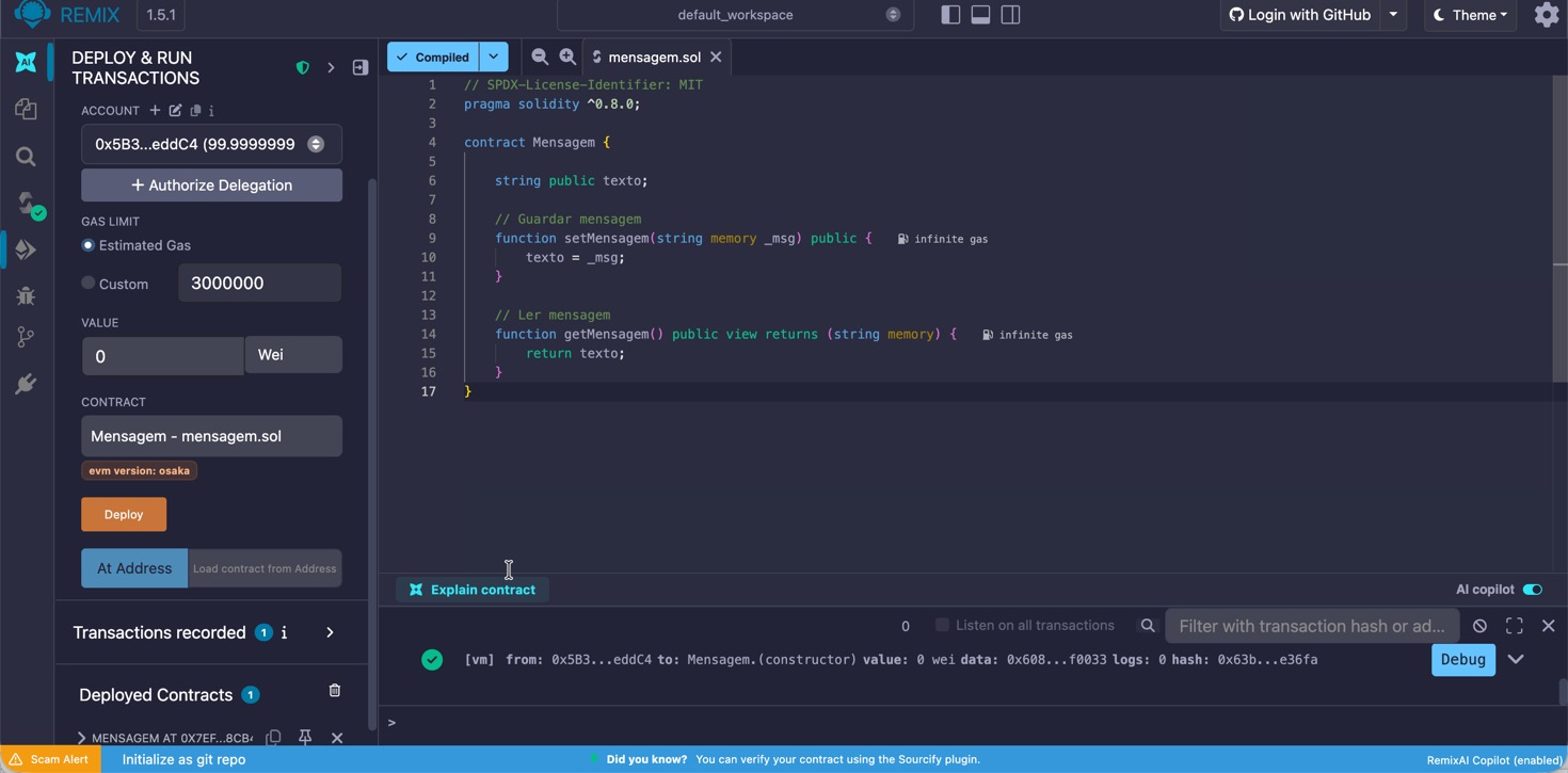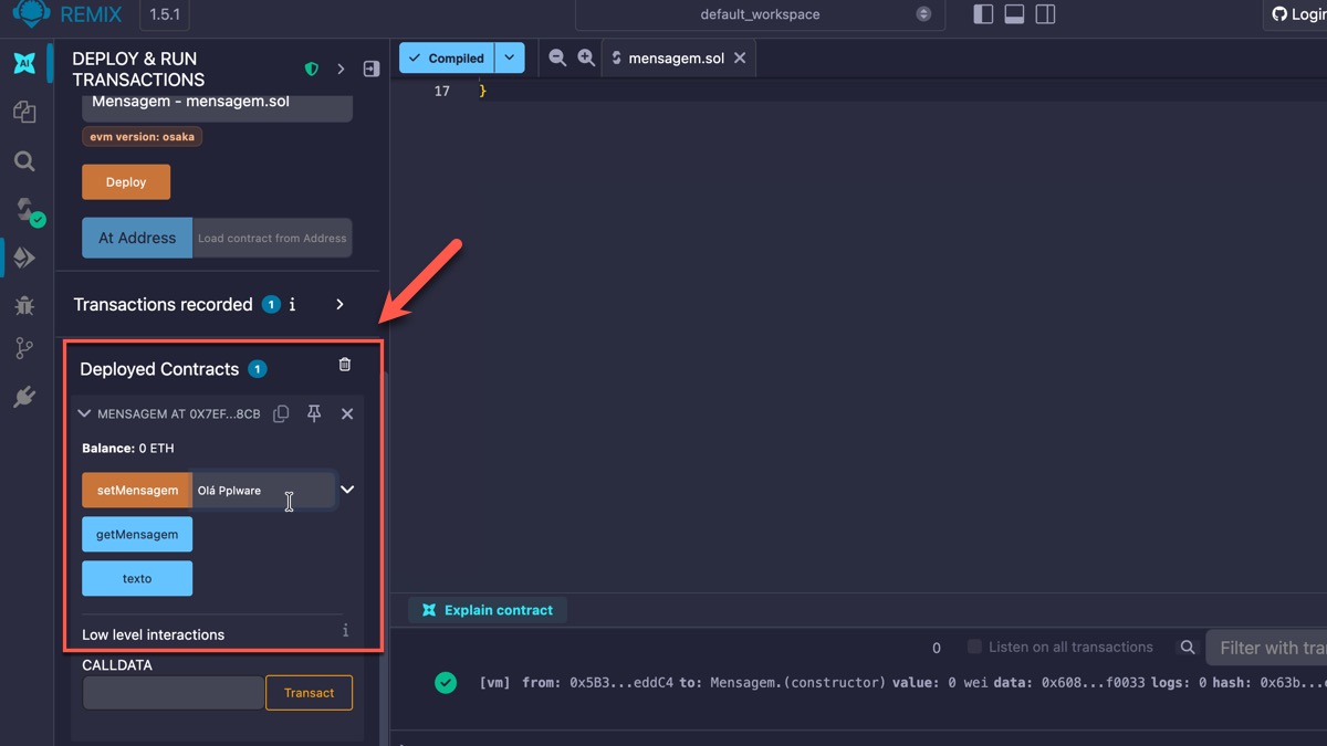Feito isto, o contrato está ativo. Depois podem interagir com o contrato