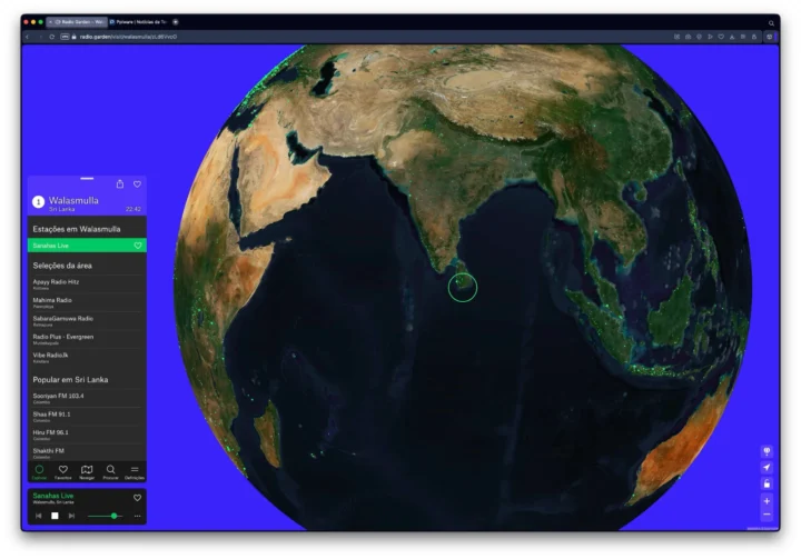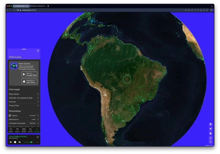 Pode experimentar o Radio.Garden gratuitamente diretamente no seu navegador: