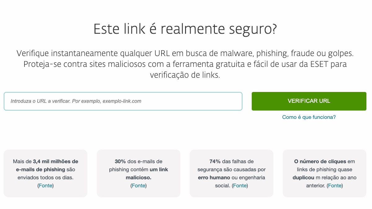 - Não descarregam anexos ou clicam em links em mensagens não solicitadas – em caso de dúvida, podem usar o verificador de links gratuito e fácil de usar da ESET;
