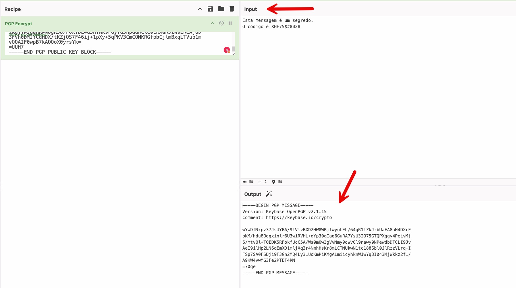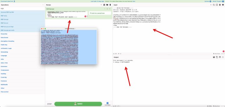 Exemplo do uso do PGP com a plataforma CyberChef