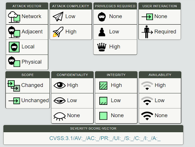 - Attack Vector (AV) – Local, rede, físico, etc.