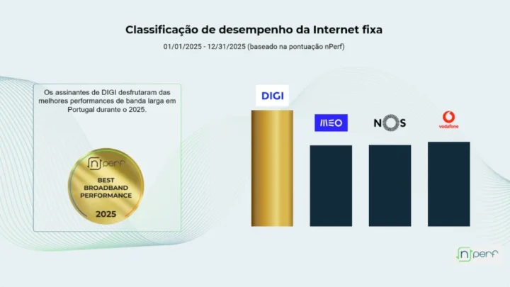 De acordo com o barómetro anual da nPerf relativo a 2025, a DIGI Portugal alcançou a liderança do desempenho da Internet fixa em Portugal, com um score global de 156 719 nPoints.