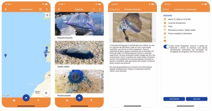 Se viu algum organismo gelatinoso na nossa costa, pode reportar através das apps móveis disponíveis aqui.