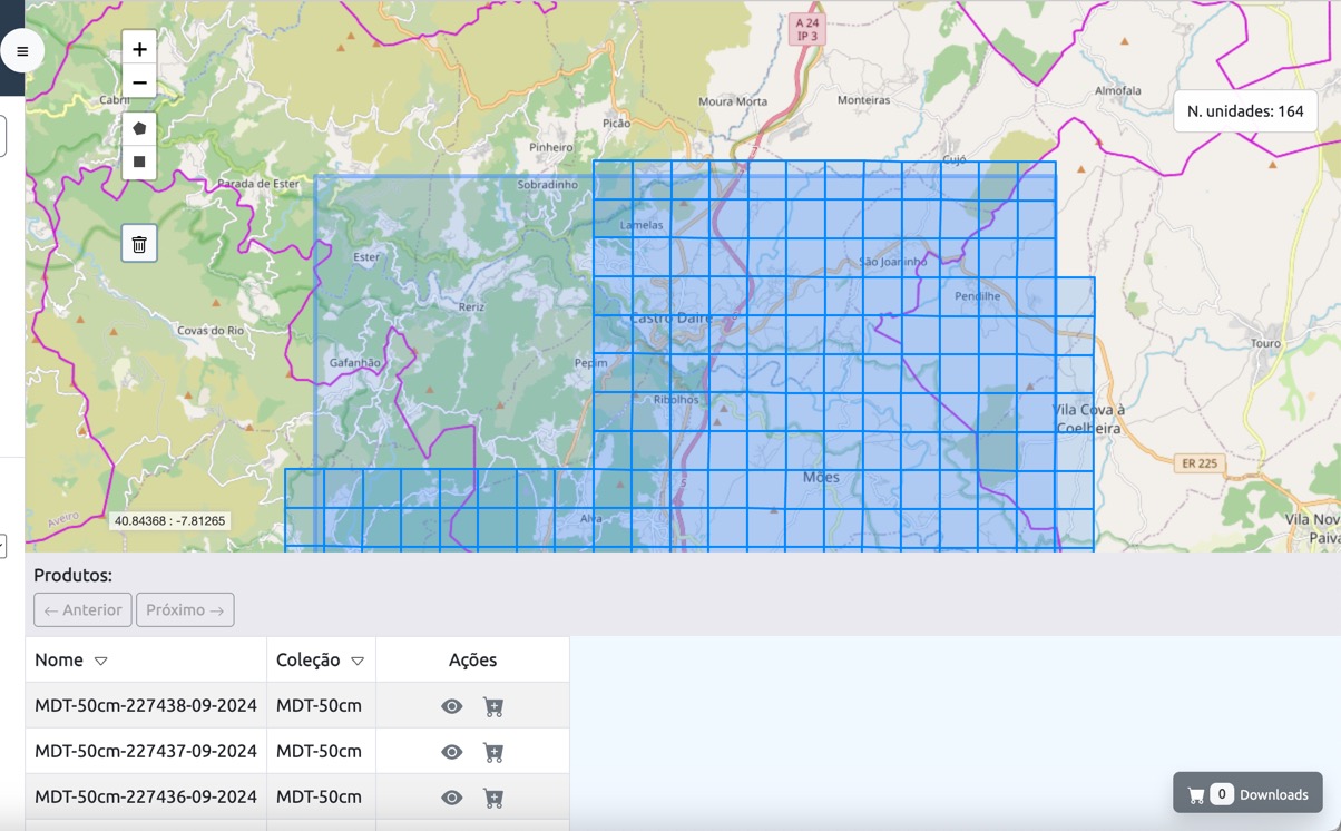 Neste momento estão disponíveis para descarregamento os dados referentes a 90% da área do território, sendo que os dados para a zona noroeste de Portugal continental estão ainda em fase de produção.