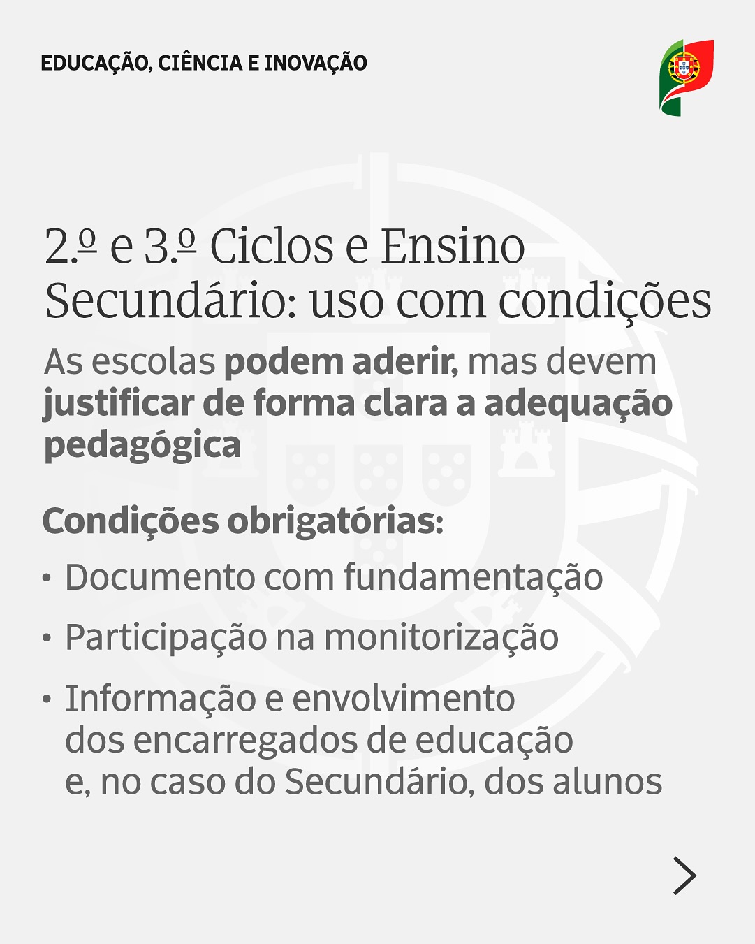 - Nos restantes ciclos, só podem ser usados com fundamentação pedagógica, formação de professores e alunos e envolvimento das famílias.