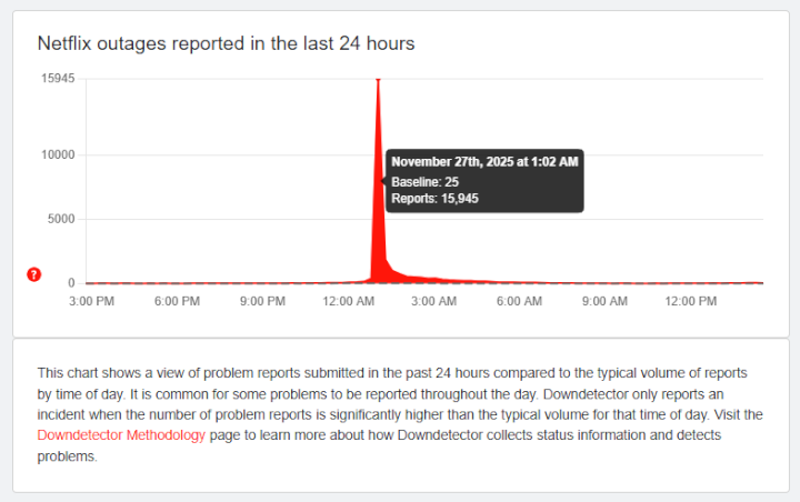 Em Portugal, onde a série estreou esta quinta-feira, o Downdetector registou um pico de quase 16.000 relatos pela 1h da manhã.