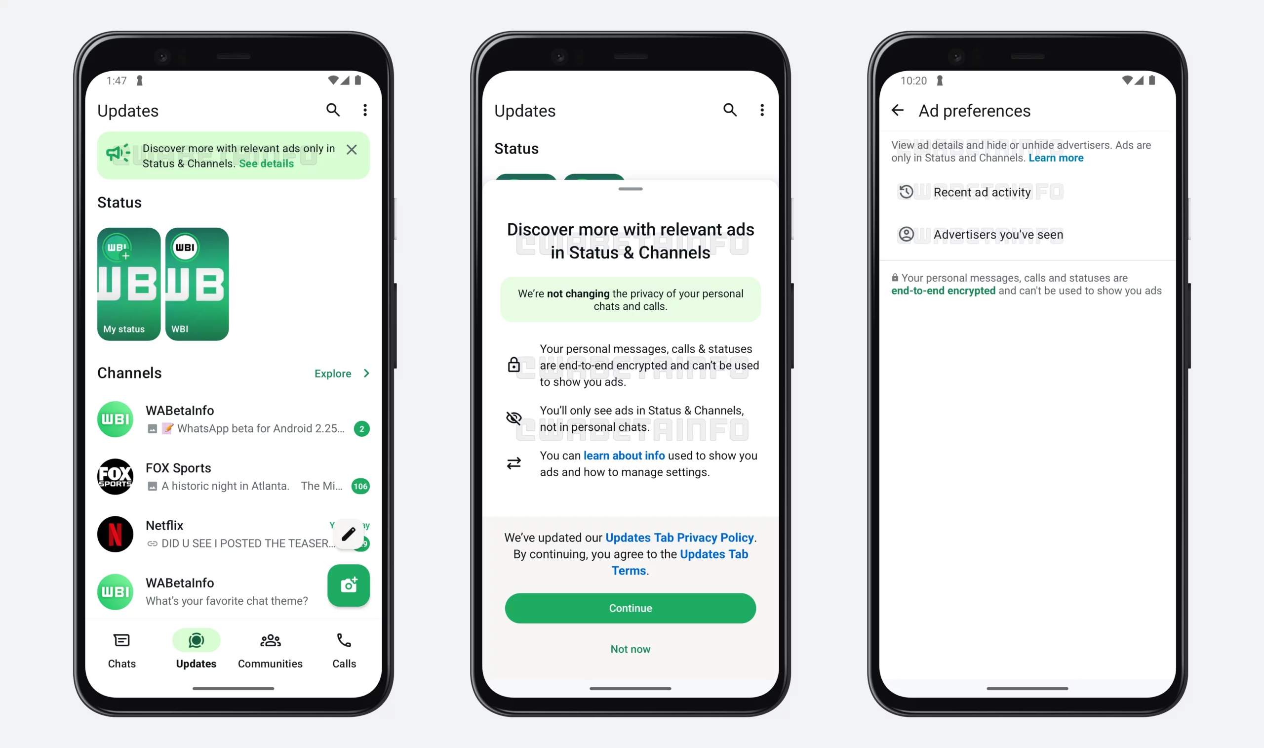 O WhatsApp deu um passo significativo no seu modelo de receitas. Alguns utilizadores que instalaram a versão beta 2.25.21.11 do Android na Google Play Store foram recebidos com um novo banner no separador “Atualizações”. Este anuncia duas novas funcionalidades de publicidade integradas na aplicação: Anúncios de Estado e Canais Promovidos.
