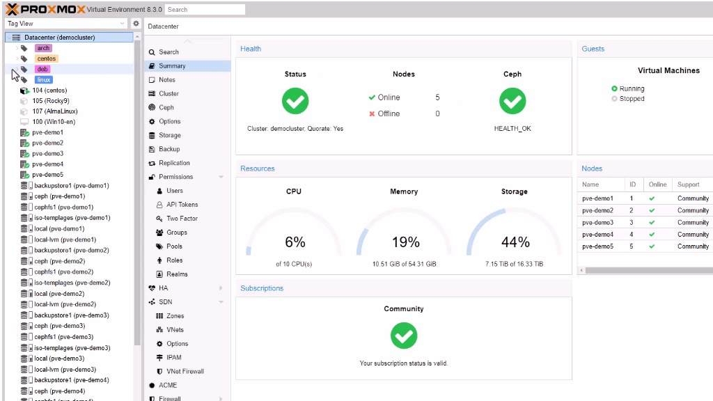 Destaque também para o processo de importação simplificado de máquinas virtuais. O Proxmox VE 8.3 oferece suporte às versões mais recentes do Ceph, incluindo o Ceph Reef, proporcionando flexibilidade adicional na gestão de armazenamento distribuído.