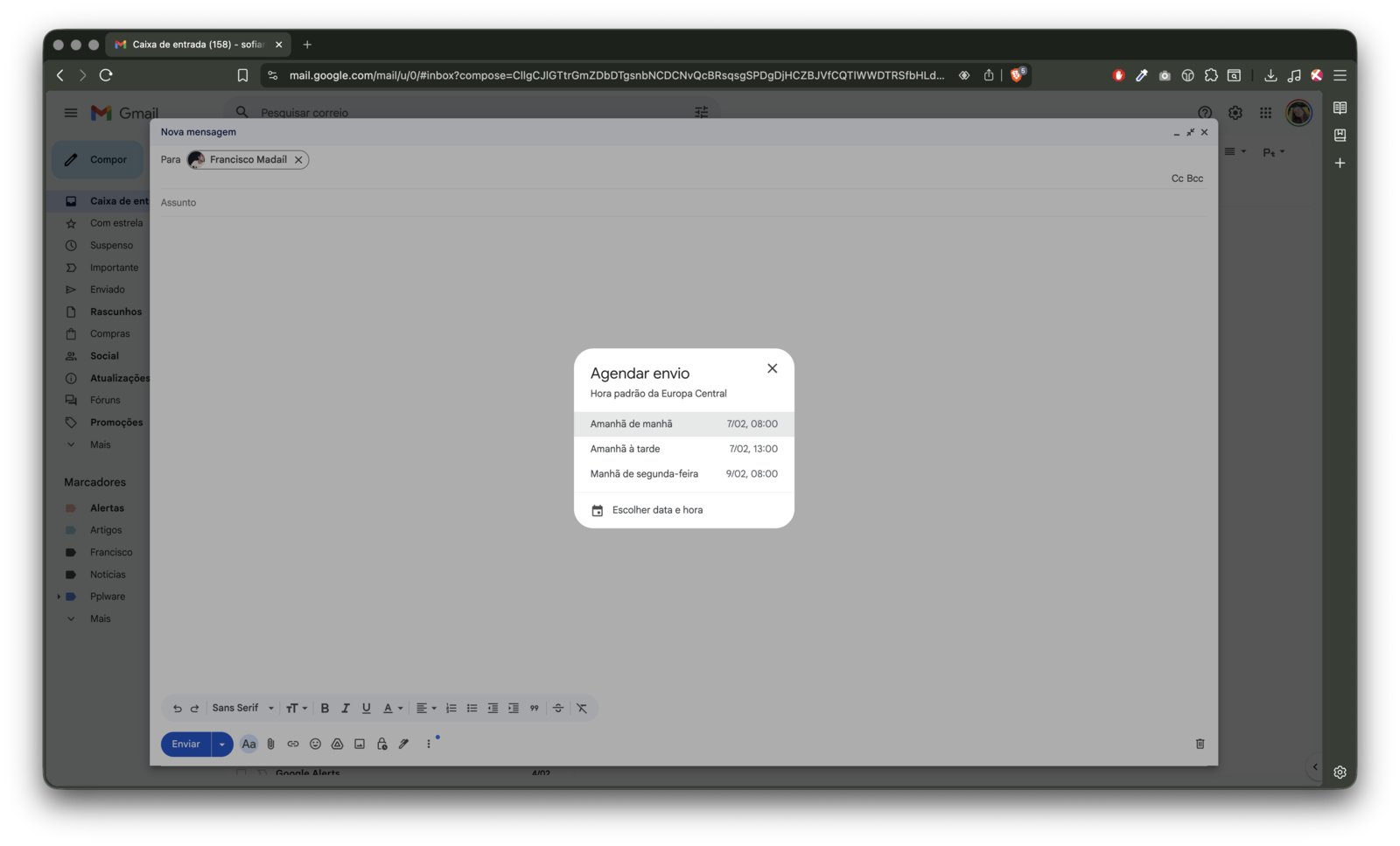 - Agende o envio para o dia e hora que quiser.