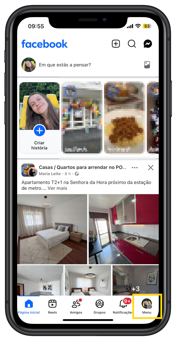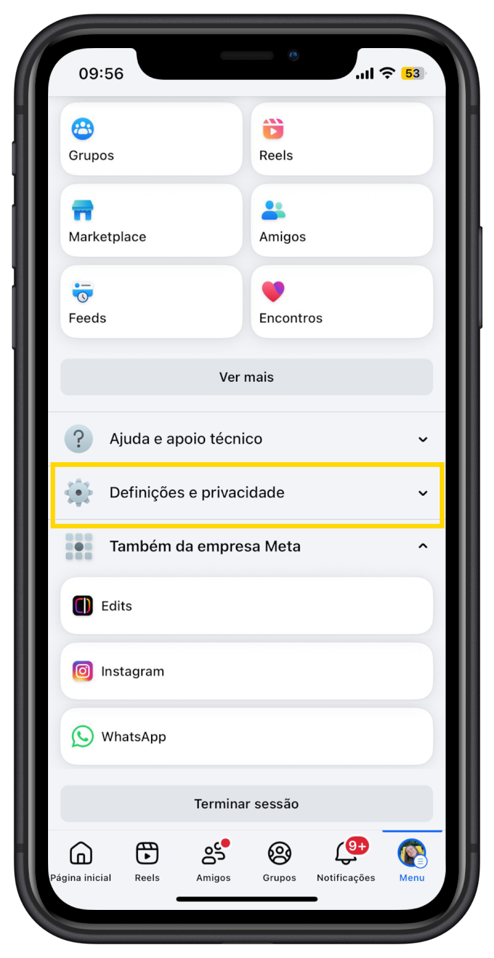 - Abrir a app do Facebook no smartphone;