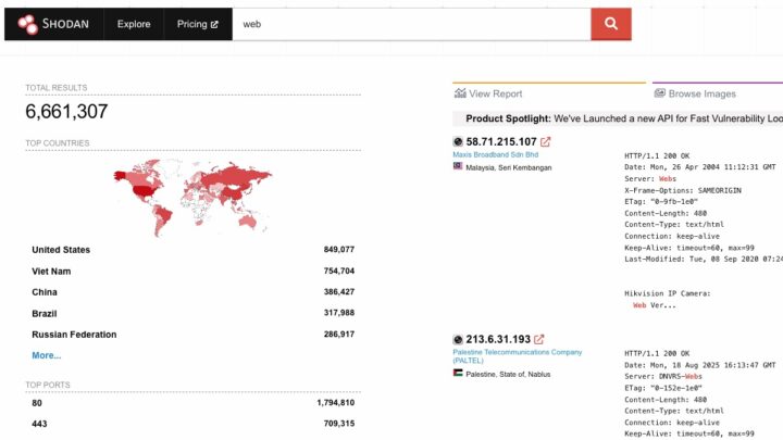 À semelhança do motor de busca da Google, que indexa páginas web, existe também Internet, um serviço, que tem como nome Shodan que põe a nu a Internet e permite descobrir dispositivos expostos na rede, como, por exemplo: