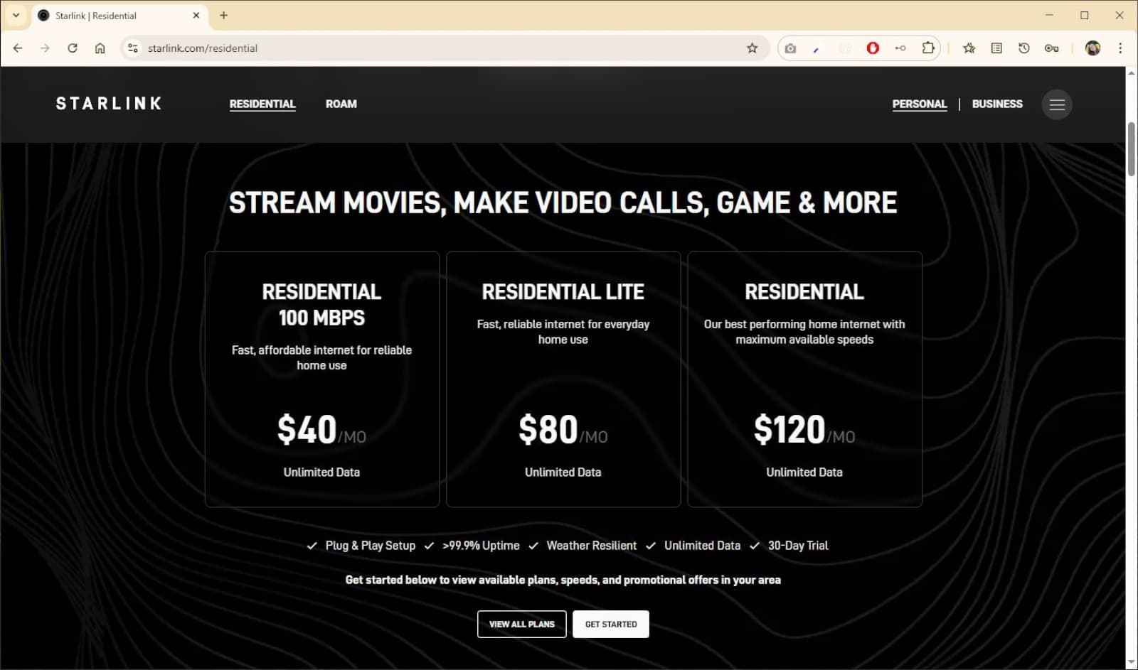 Por forma a servir "residências mais pequenas que não necessitam da elevada velocidade de conexão", a SpaceX parece estar a disponibilizar o plano mais barato até à data da sua Starlink, o Residencial de 100 Mbps.