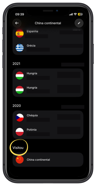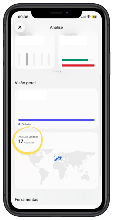 A partir das transações feitas no estrangeiro, a Revolut identifica os países visitados e apresenta essa informação de forma visual, permitindo perceber rapidamente por onde já andámos.