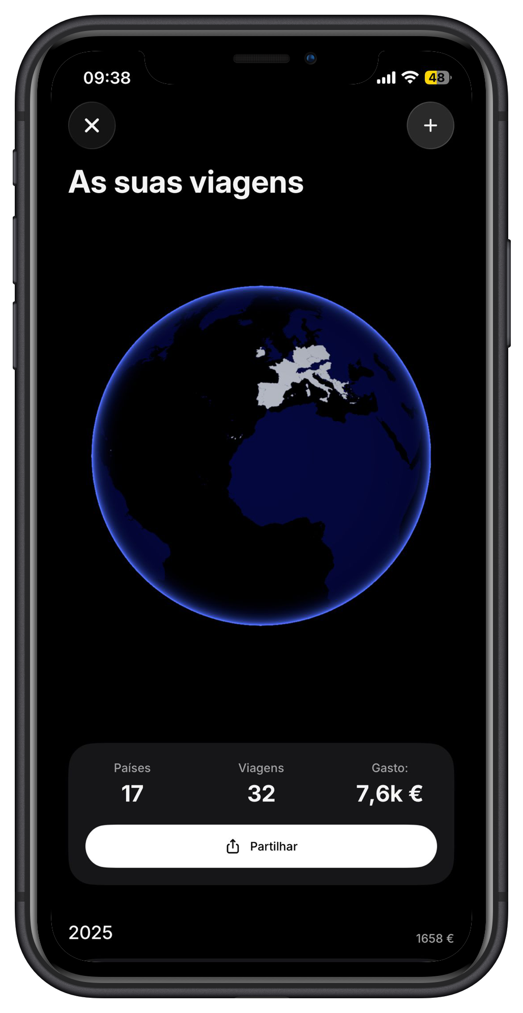 Além do controlo financeiro, o mapa funciona como um registo pessoal de viagens, permitindo recordar escapadinhas de fim de semana ou férias mais longas, sem necessidade de qualquer configuração extra.