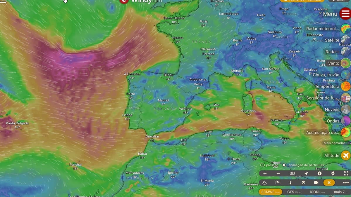 Para saber como está o cenário atual em Portugal e o que vem aí, aceda ao site Windy ou instale a app.