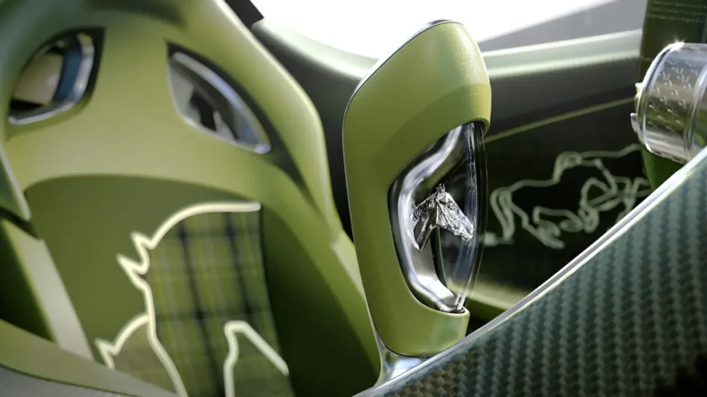 Cada pormenor do Brouillard foi pensado para reforçar a ideia de que se trata de uma peça irrepetível. O interior é uma fusão de materiais como fibra de carbono em tom verde, alumínio e pele com detalhes em padrão tartan. Os bancos não são de série; são moldados de acordo com as medidas e preferências do cliente.