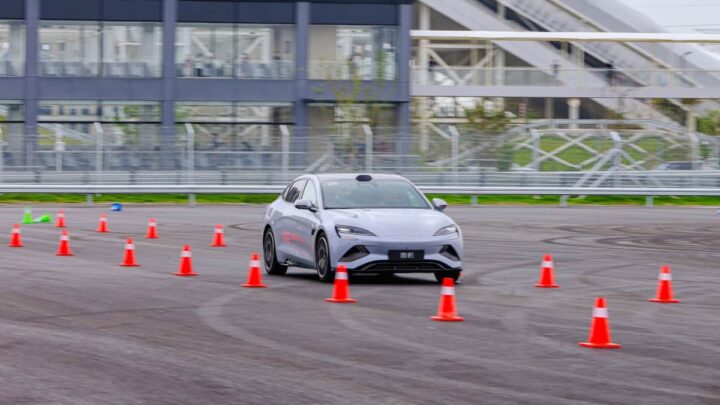 O paddock dinâmico de 15.300 metros quadrados apresenta mais de uma dúzia de cenários, como o slalom padrão, "teste do alce" e estacionamento automatizado, permitindo testar toda a gama de tecnologia inteligente da BYD.