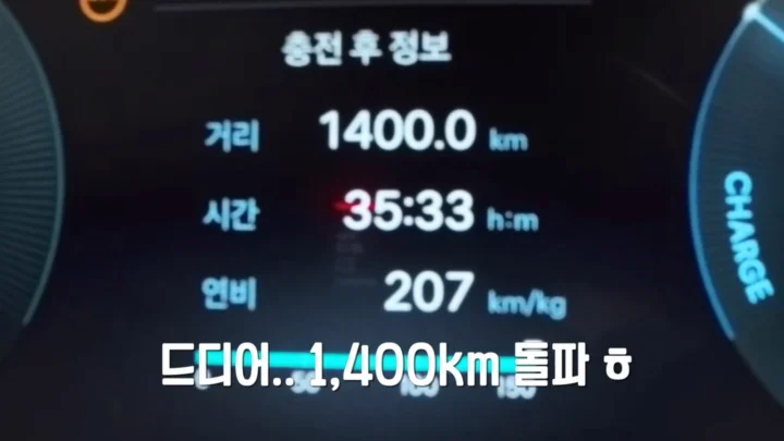 O teste realizou-se em meados de outubro na zona de Saemangeum, com partida na estação de recarregamento de Gunsan. Vários criadores de conteúdo ligados ao mundo automóvel participaram, revezando-se ao volante. Um dos veículos atingiu 1.400,9 km e o outro 1.360,7 km. Nenhum ficou abaixo do recorde anterior.