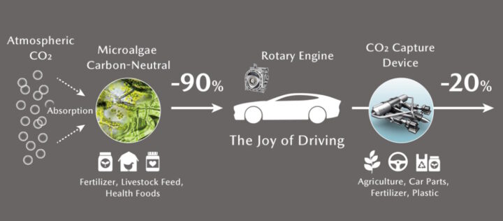 Tecnologia consegue a neutralidade carbónica, combinando combustível neutro em carbono com dispositivos de captura de CO2. Isto só é possível por se tratar de um motor de combustão interna, segundo a Mazda.