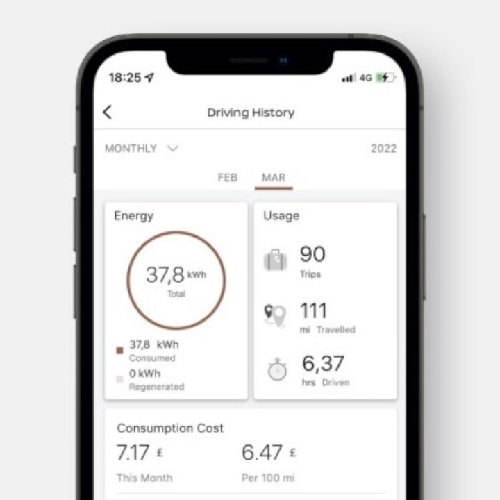 Os dois ecrãs de 14,3", painel e central, ajudam a formar um cockpit totalmente digital, enquanto a aplicação de conectividade (app NissanConnect Services) dá acesso remoto a verificações da bateria, preparação do clima e planeamento de viagens.