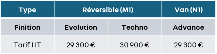 Os preços começam nos 29.300 € (sem IVA) para a versão Evolution e Advance e nos 30.900 € para a Techno, com incentivos estatais a poderem reduzir até 5.060 € ao valor final. Para o mercado nacional, estes preços poderão ainda sofrer ajustes.