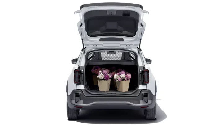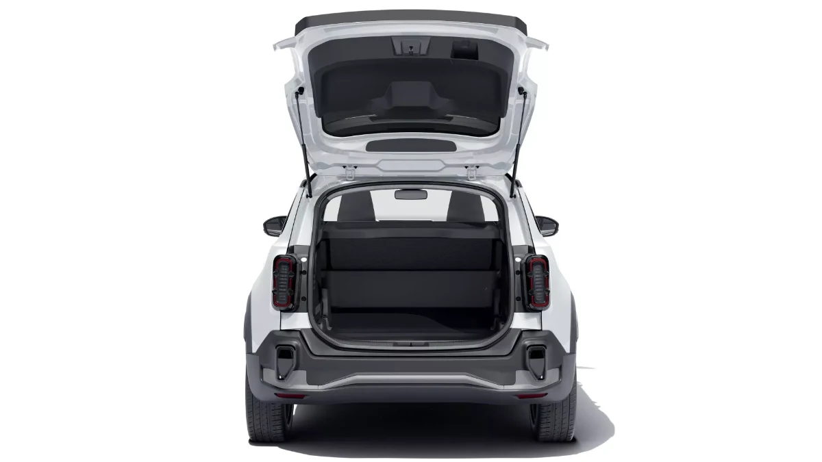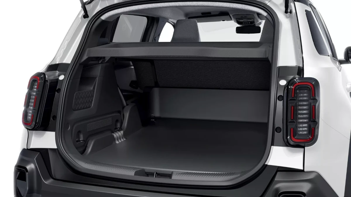 O volume útil atinge 940 dm³ VDA (1.045 litros), com um piso termoformado, ganchos de fixação e um compartimento de 55 litros sob o piso, ideal para esconder cabos e acessórios.