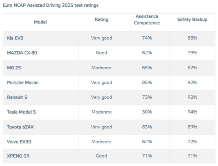 "Kia, Porsche, Renault, and Toyota raise the standard for Assisted Driving systems – Tesla and Volvo could do better" - Euro NCAP