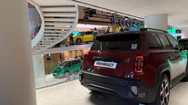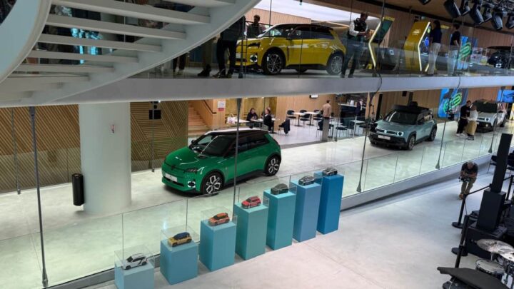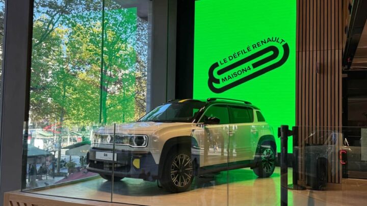 Na abertura, a estrear o novo espaço, a marca francesa apresentou a versão 2025 do Renault 4 E-Tech elétrico, uma versão contemporânea do icónico automóvel lançado em 1961.