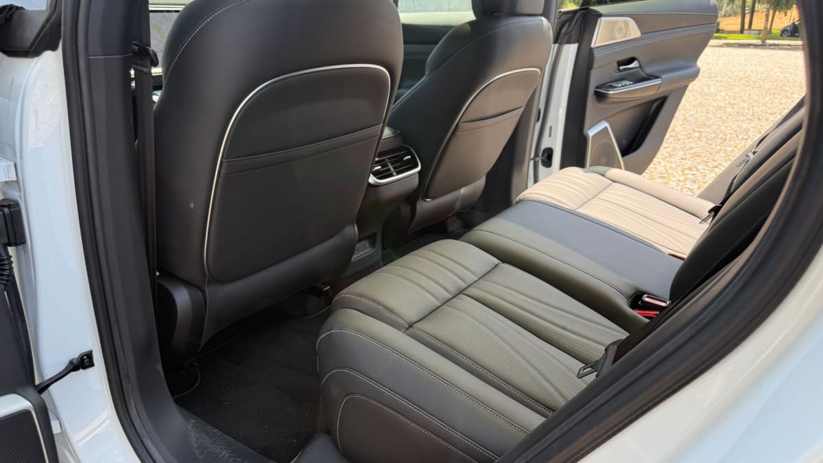 A qualidade dos materiais é genuinamente surpreendente. Os bancos em pele (com opção de napa) oferecem aquecimento, ventilação e, nas versões mais equipadas, até função de massagem em quatro posições.