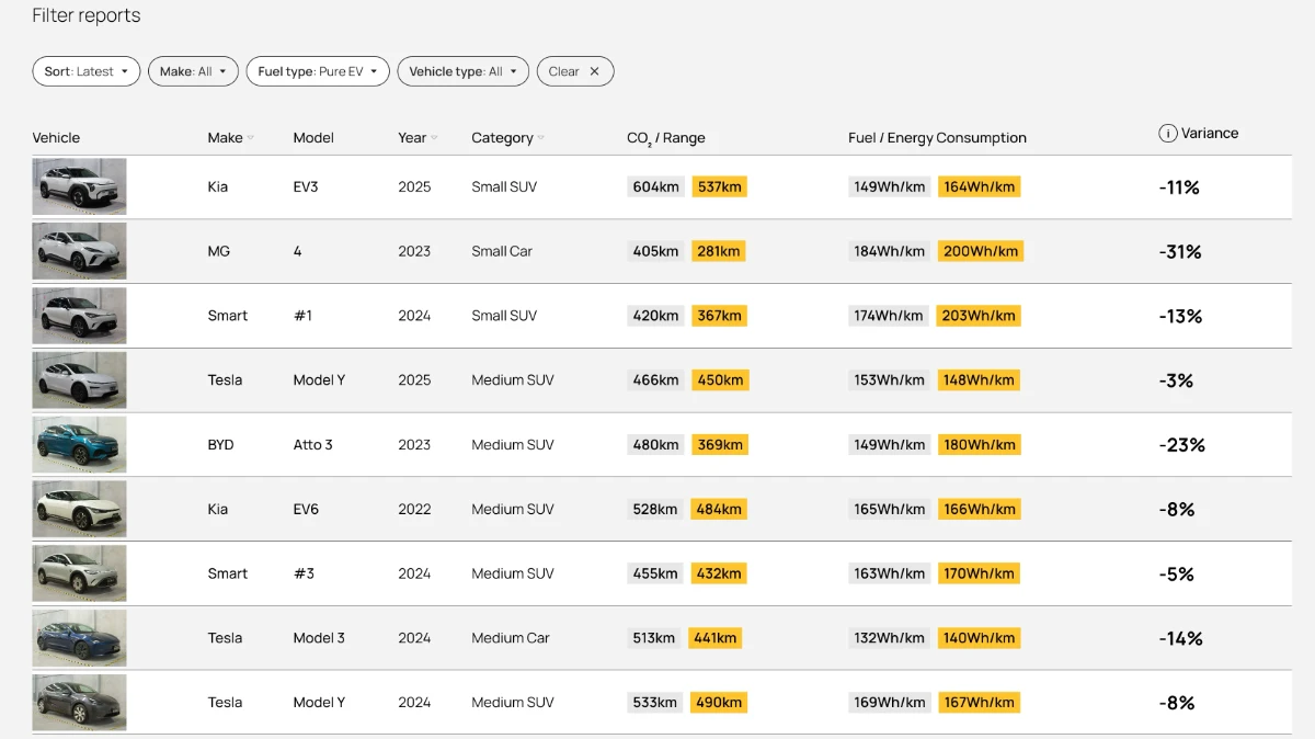 Estes resultados dão aos consumidores uma indicação independente da autonomia real, o que significa que agora sabem que carros cumprem o anunciado e quais não cumprem.