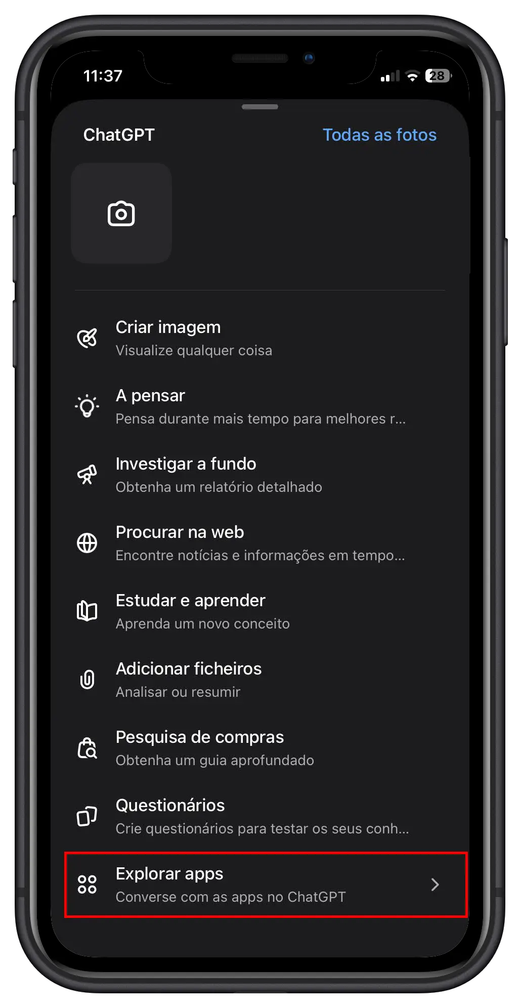 1. Aceda ao ChatGPT no iOS ou no browser com a sua sessão iniciada.