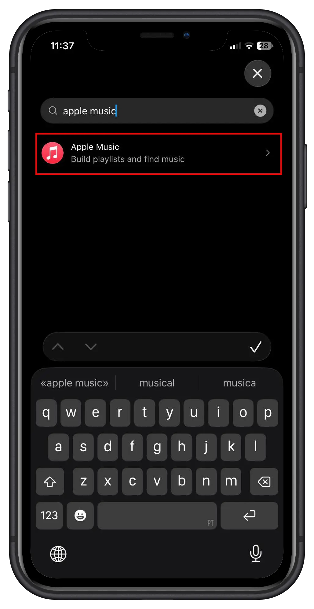 4. Pesquise por "Apple Music" e selecione a primeira opção.