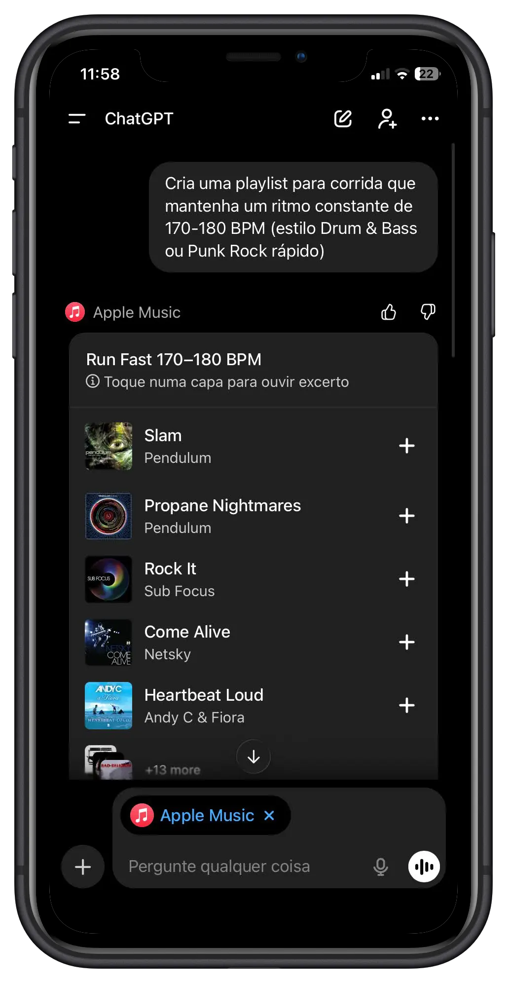 O Apple Music é extremamente eficiente e célere quando a procura é direta. Contudo, a experiência torna-se menos fluida quando a descoberta musical depende de um estado de espírito, de uma memória vaga ou de um conceito ainda pouco definido. Nestes cenários, o ChatGPT demonstra uma capacidade superior para moldar o pedido antes de iniciar a reprodução.