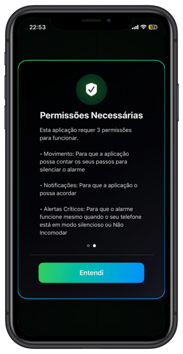 - Alertas críticos, para que o alarme funcione mesmo com o iPhone em modo Silêncio ou Não incomodar.