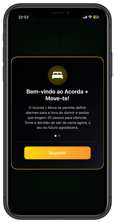 Foi exatamente por exaustão que surgiu a aplicação "Acorda + Move-te", disponível para iOS: "muitas vezes tive dificuldade em acordar e sair da cama pela manhã, definindo três alarmes separados no meu telefone para horários diferentes", contou o desenvolvedor, em comunicação enviada ao Pplware.