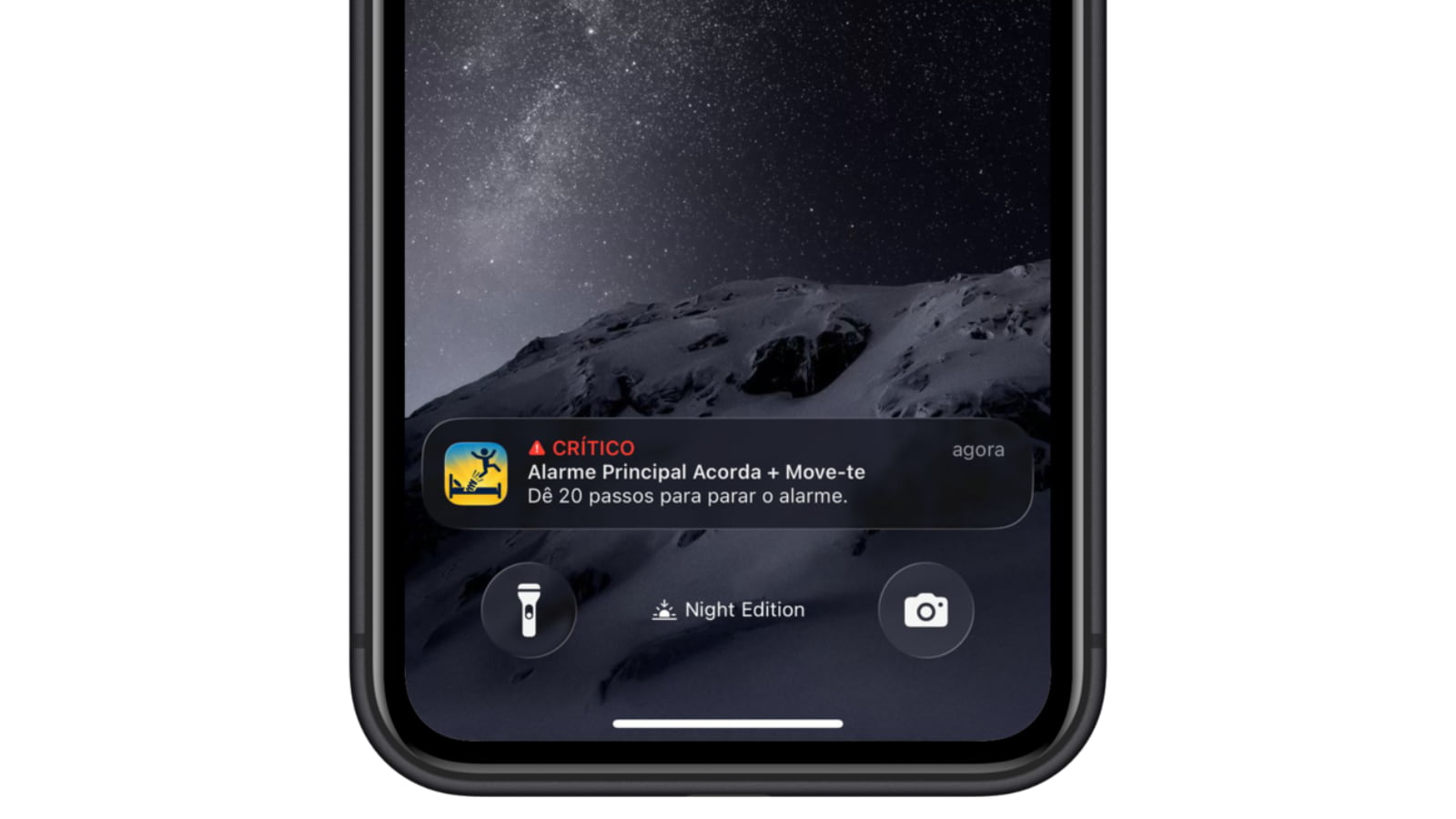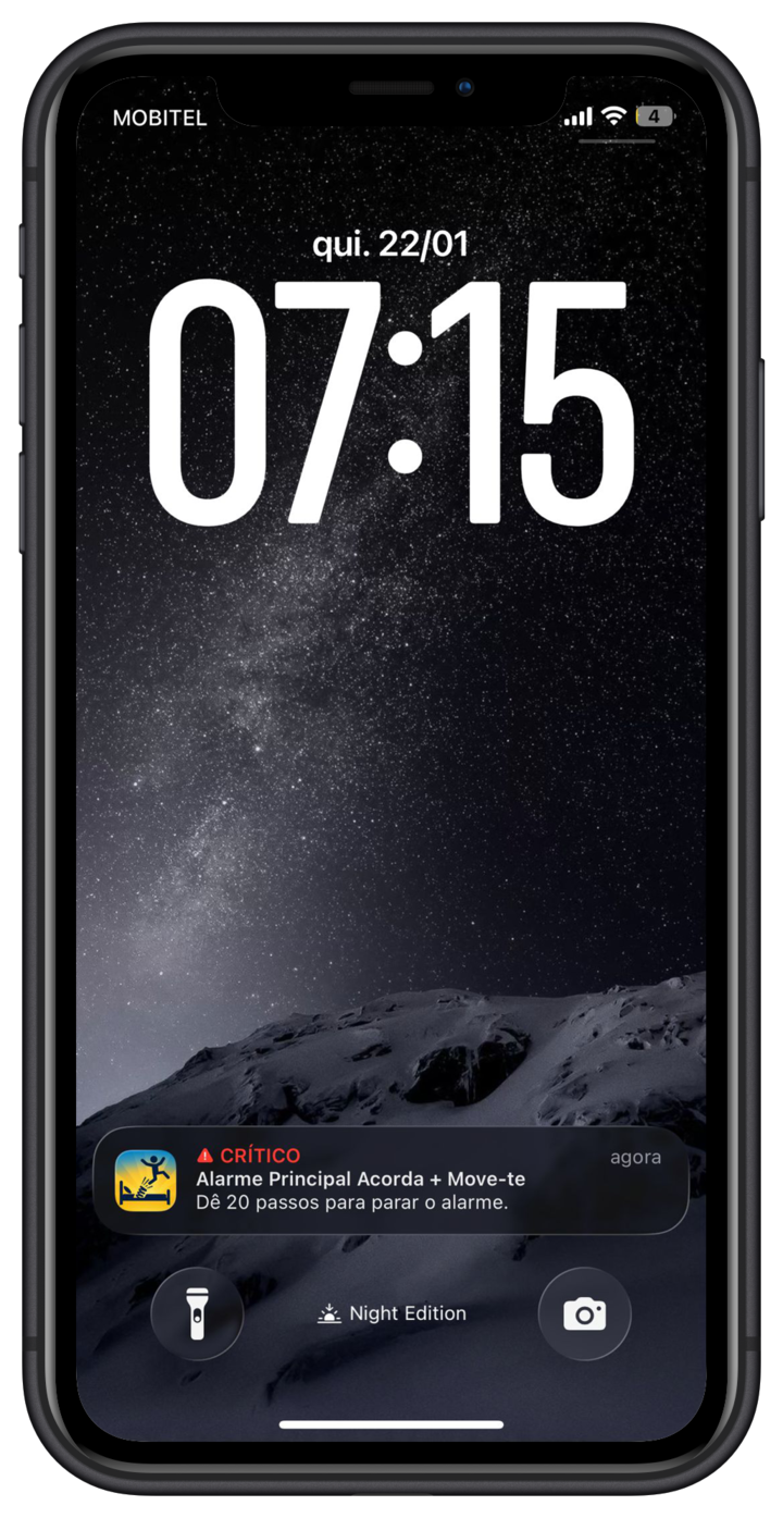 - Alertas críticos, para que o alarme funcione mesmo com o iPhone em modo Silêncio ou Não incomodar.