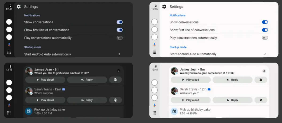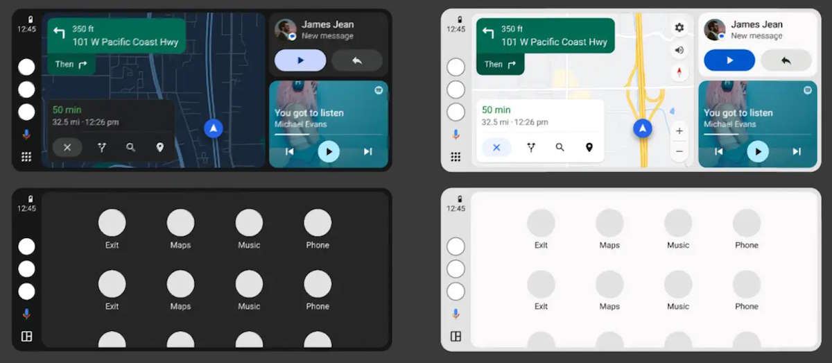 De facto, segundo as imagens publicadas pela própria Google, pode-se ver como o modo claro do Android Auto é aplicado em praticamente todas as secções da interface. Isto inclui tudo, desde a barra de navegação ao menu de definições, ou até mesmo em aplicações como o Google Maps.