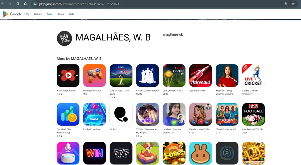 Nomes e dados das apps maliciosas
