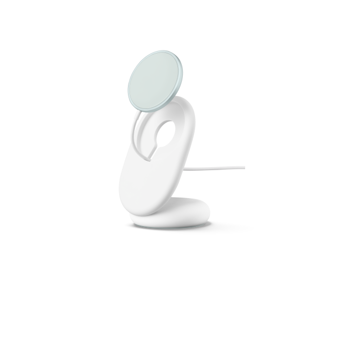 O utilizador pode usar o carregador Pixelsnap com suporte para posicionar o telemóvel na estação de carregamento na vertical, mantendo-o útil até ficar totalmente carregado.