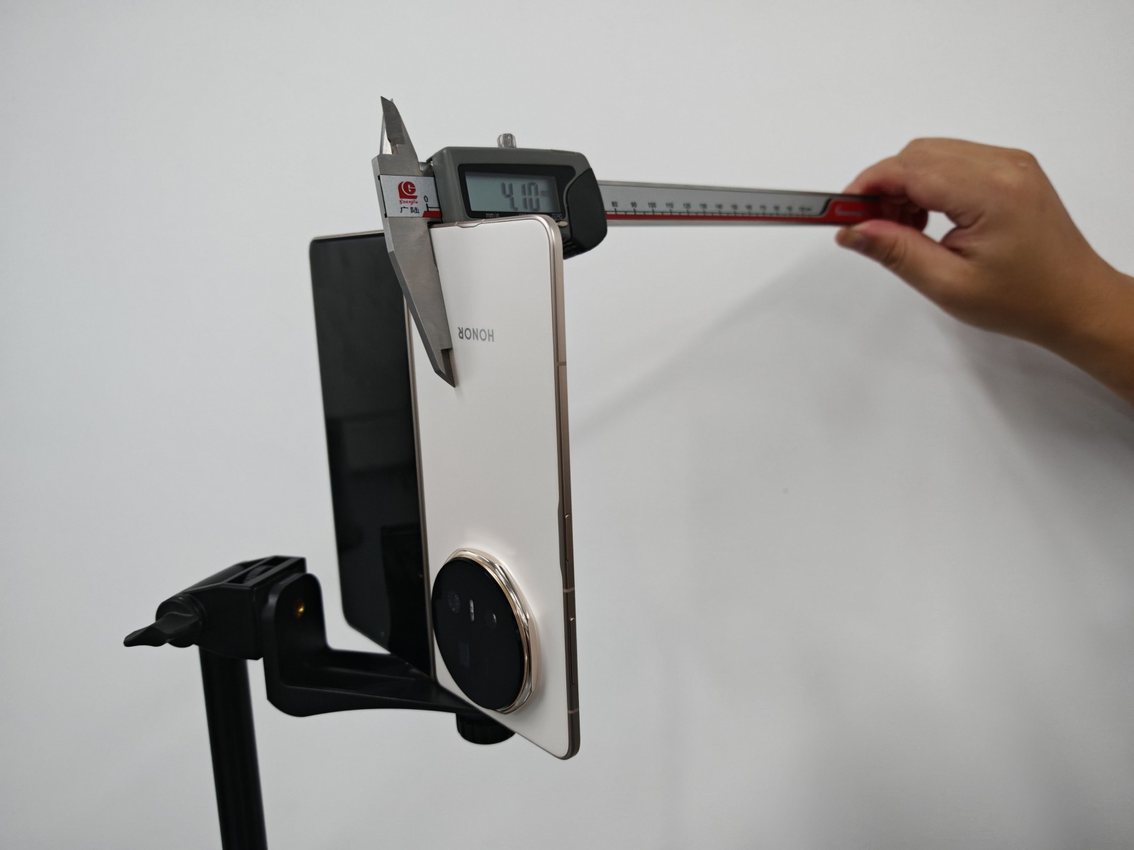 Tudo foi iniciado quando Ice fez o seu próprio teste com um conjunto de instrumentos que mostram 8,95 mm para o Honor e 8,79 mm para o Galaxy. O leaker afirma que o Magic V5, em branco marfim, foi o que foi medido, como deve ser. O modelo em branco marfim é mais fino do que as outras três cores, que medem 9,0 mm/4,2 mm dobrado/desdobrado.