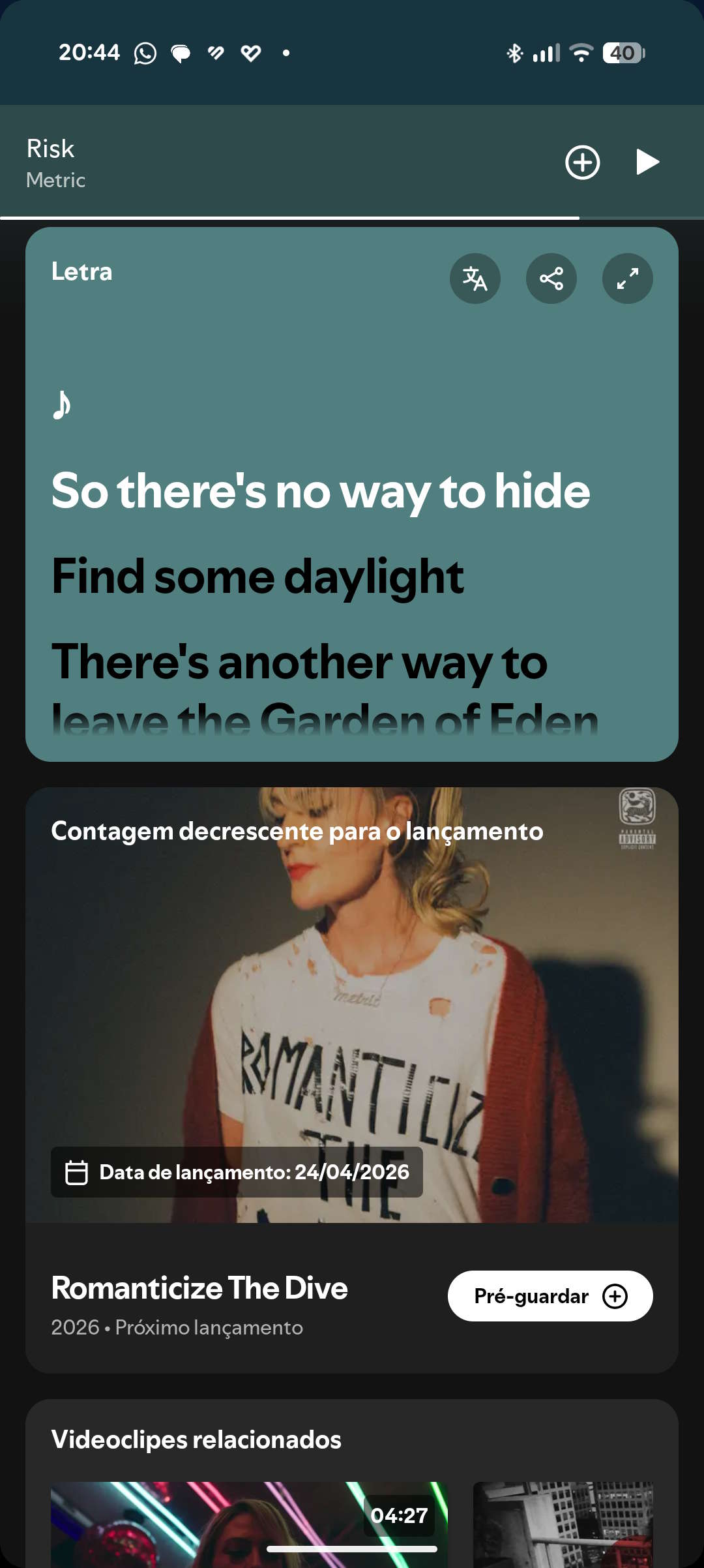 Quem não pretender que a pré-visualização da letra apareça, pode desativá-la tocando no menu de três pontos e selecionando "Letra desativada". Tal como a tradução dsa letras das músicas, esta funcionalidade estará disponível tanto para utilizadores gratuitos como para utilizadores Premium.