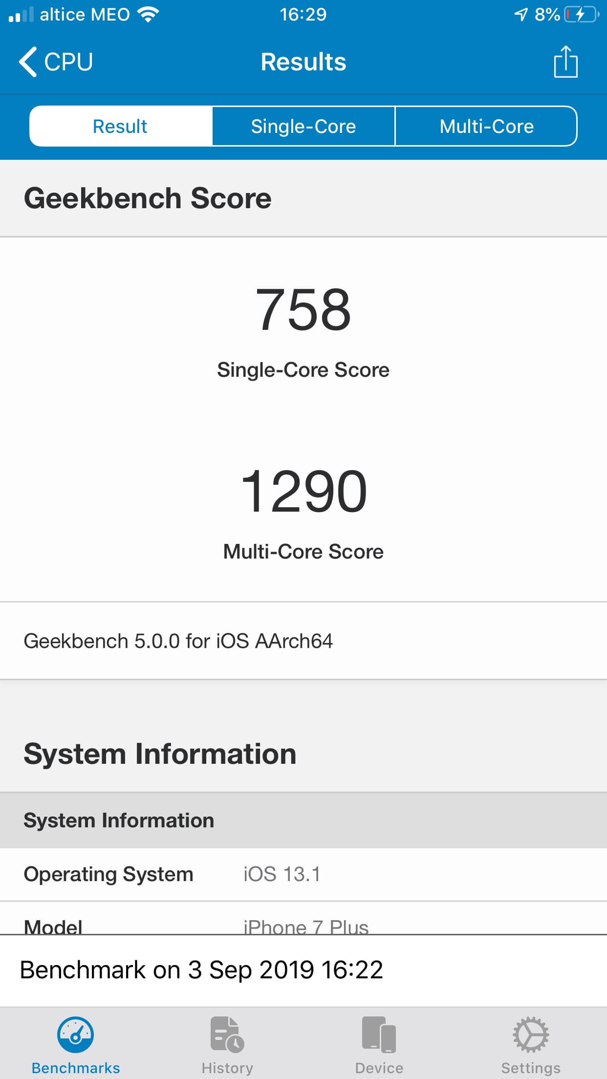 Estive agora a ver, e na net os resultados para o 6s são completamente diferentes no Geekbench 4… mais de 2600 em single core??!! Porque dá apenas 500 no GeekBench 5??