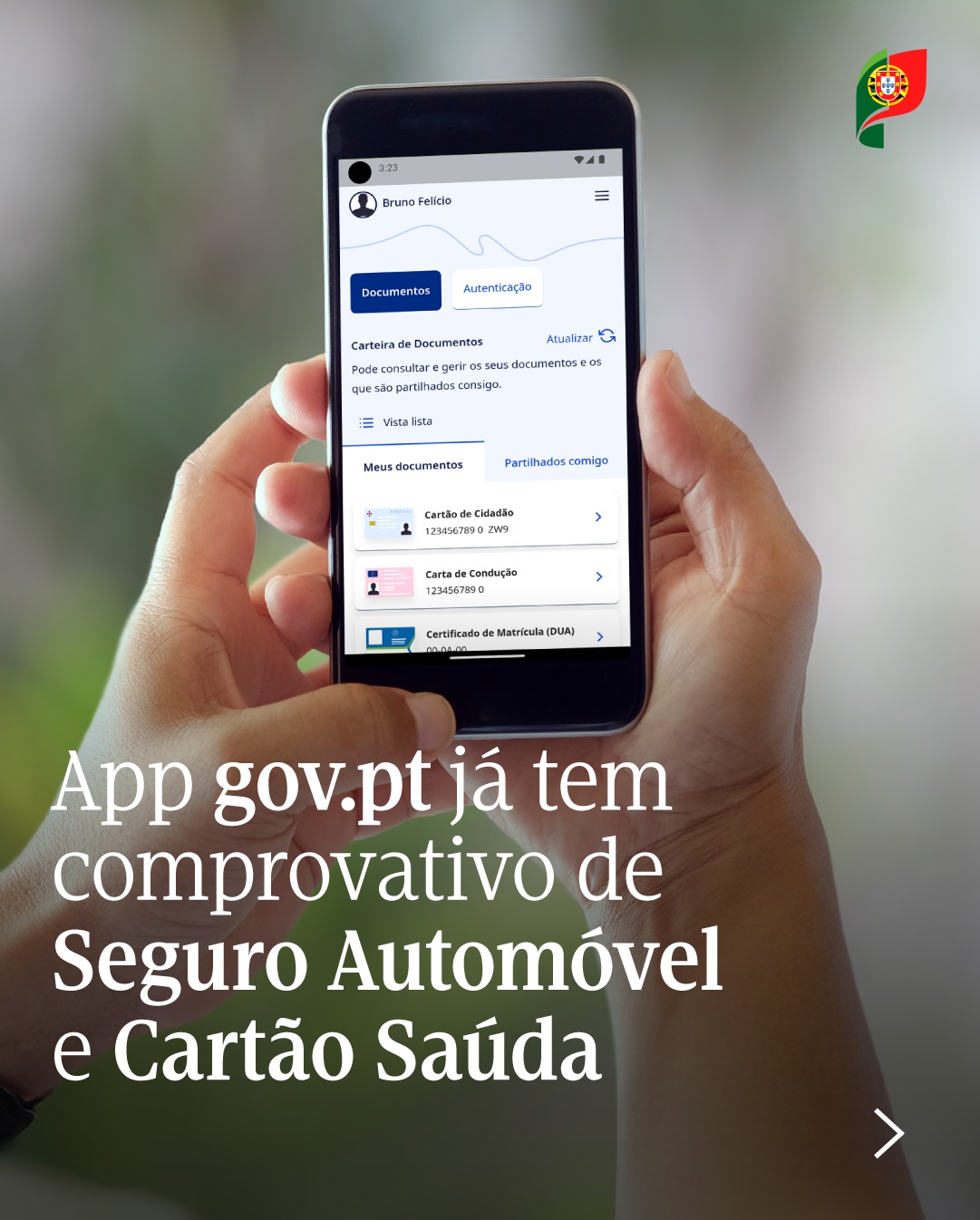 Já pode ter o Seguro Automóvel e Cartão Saúda na app gov.pt