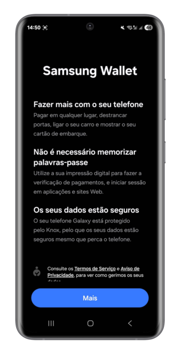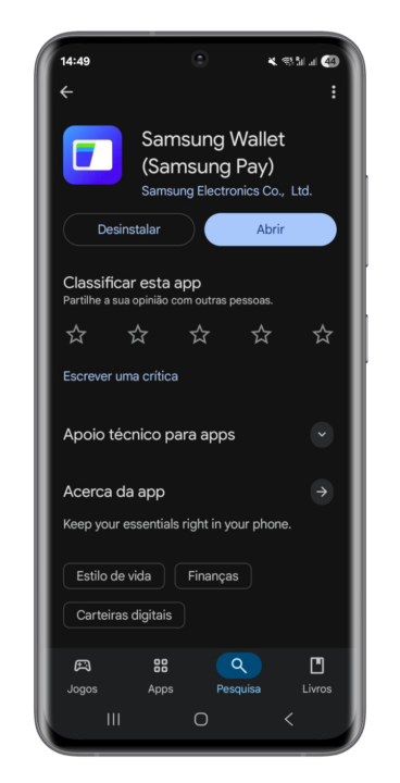 Para utilizar a Samsung Wallet, num smartphone Galaxy, é necessário instalar a aplicação Wallet.