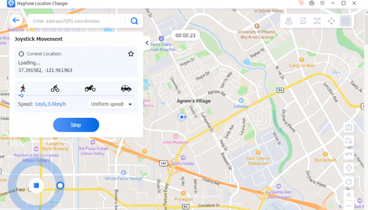 - Passo 4 (Opcional): Utilizar o modo Joystick para simular percursos a pé ou de carro, tornando o movimento mais natural. Esta funcionalidade é especialmente útil para quem pretende evitar alterações bruscas de localização, incluindo utilizadores de jogos baseados em GPS, como os jogadores que utilizam o spoofing no Pokémon GO.